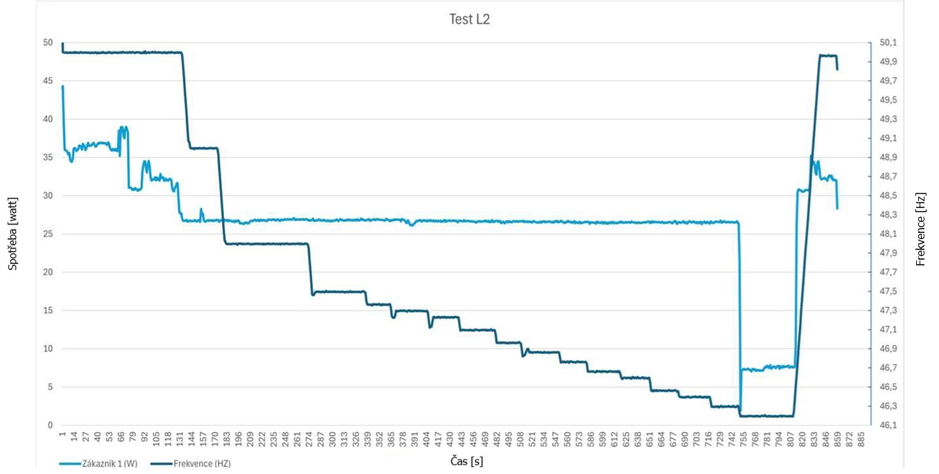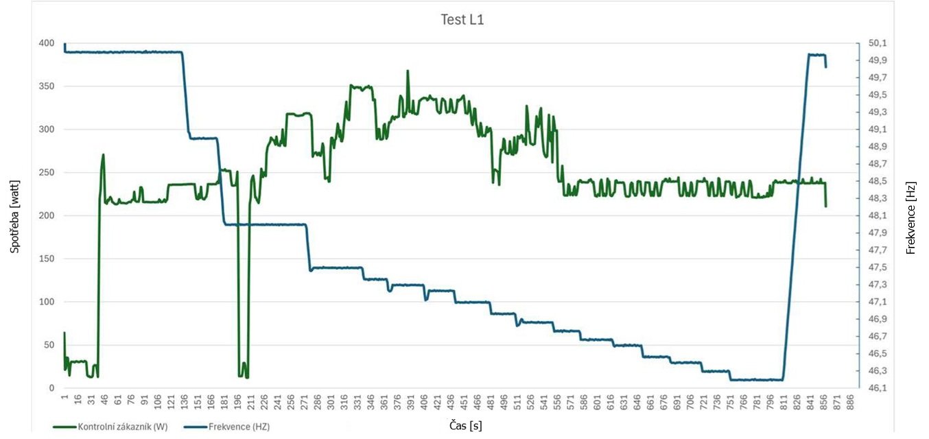 Při výpadku byl naměřený pokles vstupní frekvence na hodnotu 46,2Hz.
